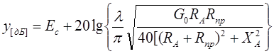 где λ=300/f – длина волны связи, м; f – частота связи, МГц; Gε – коэффициент усиления приемной антенны на рабочей частоте в направлении прихода волны; RA , XA – активная и реактивная составляющие входного сопротивления приемника, Ом (реактивная составляющая входного сопротивления приемника принимается равной нулю). С учетом формулы 1.2 имеем: