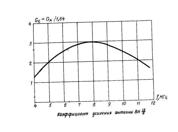 усиления антенны ВН 13/9 находим из графика на рис. 4