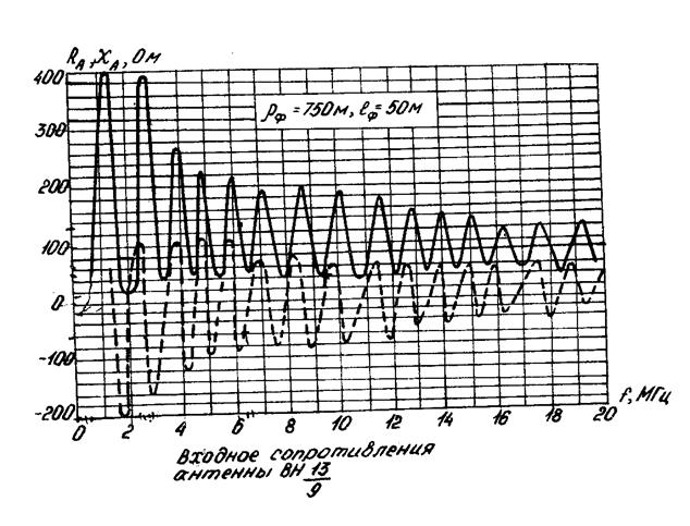 Расчет средних уровней сигналов на входе приемника производится по формуле (1.2). Значения коэффициентов усиления приемной антенны на рабочих частотах связи находим из графика рис .4; значения активной и реактивной составляющей входного сопротивления антенны ВН13/9 определяем из графика на рис.5. Входное сопротивление приемника полагаем чисто активными равным 75 0м.