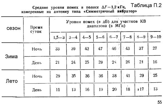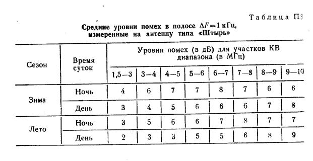 Ожидаемые средние уровни помех на входе приемника с полосой пропускания ∆F=1,2 кГц определяем из табл. П2, с учетом найденных ОРЧ и заданного времени связи.