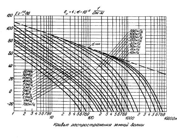 где Е(1) с1 (d)[дБ] – эффективное значение единичной напряженности поля сигнала, создаваемого на удалении d от излучателя при условии, что на всем протяжении d параметры почвы соответствуют параметрам i-ого участка трассы.