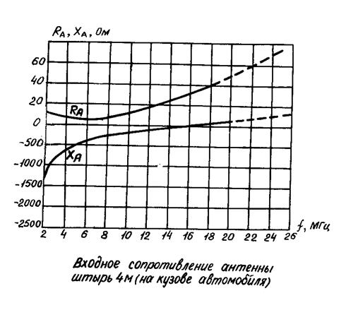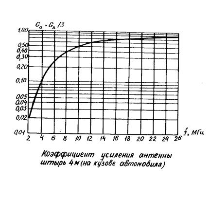 где λ=300/f – длинна волны связи, м ; f – частота связи в мегагерцах; G0 – усиление приемной антенны по отношению к коэффициенту направленности штыря на рабочей частоте; RA , XA – активная и реактивная составляющие входного сопротивления приемной антенны на рабочей частоте в омах (обычно входное сопротивление приемника полагается чисто активным и равным 75 Ом).