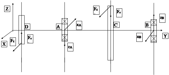 Расчёт подшипников производиться по тому из них, на который приходиться максимальная нагрузка. В данном случае по эпюрам действующих на вал моментов, показанных на рис.1, легко определить, что наибольшая нагрузка приходиться на подшипник, расположенный между колесом и выходной шестернёй (т.А).
