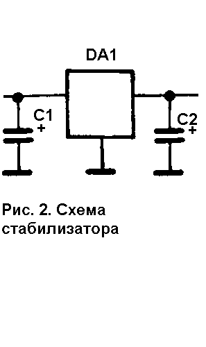 Теперь рассчитаем стабилизатор напряжения с требуемыми параметрами. Входные цепи блока питания состоят из понижающего сетевого трансформатора и мостового выпрямителя. Схема стабилизатора напряжения показана на рис. 2.