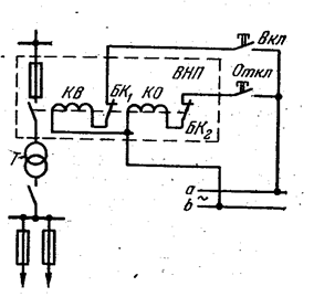 СХЕМА ЗАЩИТЫ ТРАНСФОРМАТОРА НА ПЕРЕМЕННОМ ОПЕРАТИВНОМ ТОКЕ