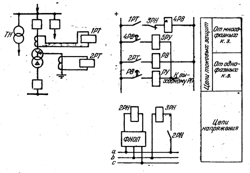 Рис. 2. Защита трансформатора от внешних к. з. и перегрузок.