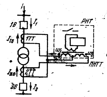 Рис. 5.5 Схема включения реле РНТ в дифференциальной токовой защите трансформатора