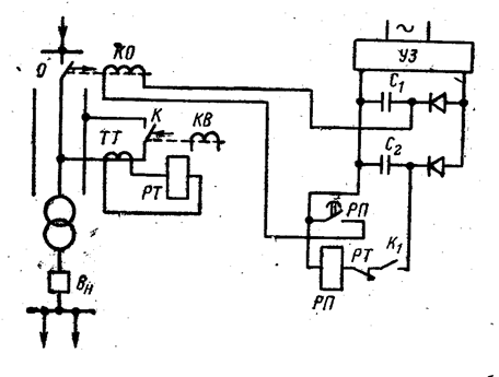 передача отключающего сигнала по высокочастотному каналу (на базе проводов линии) или по жилам специального кабеля от защит трансформатора на отключение выключателя питающего конца линий.