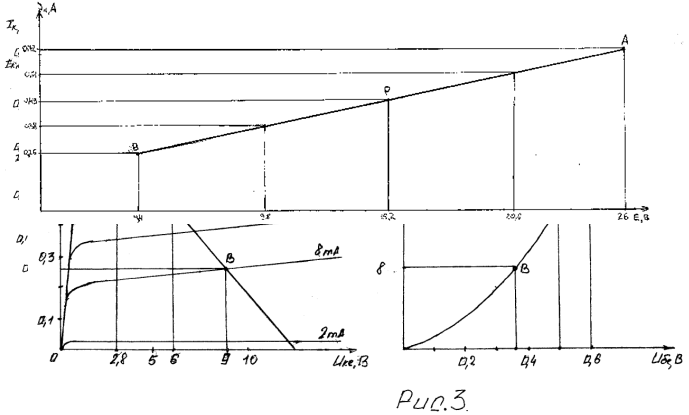 3) Розрахунок режимів роботи транзисторів по постійному і змінному струму.