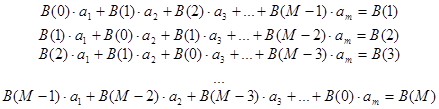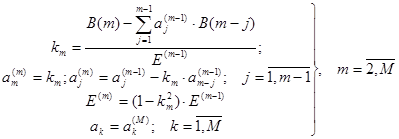 Для решения СЛАУ с такой матрицей используется алгоритм Левинсона – Дурбина, который требует меньших вычислительных затрат, чем стандартные алгоритмы. Он выглядит следующим образом.