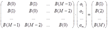 При использовании автокорреляционного метода вся информация о сигнале, необходимая для определения коэффициентов линейного предсказания, содержится в кратковременной ненормированной АКФ B (i ).