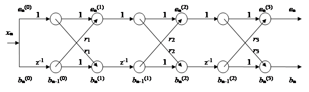 Приведем также рекуррентные разностные уравнения решетчатого фильтра сигнала ошибки: