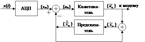 В этой схеме предсказатель стоит в цепи обратной связи, охватывающей квантователь. Вход предсказателя обозначен