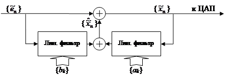 = 1, 2, …, M, как показано в формуле (**). Улучшение качества оценки можно получить включением в оценку линейно отфильтрованных последних значений квантованной ошибки.