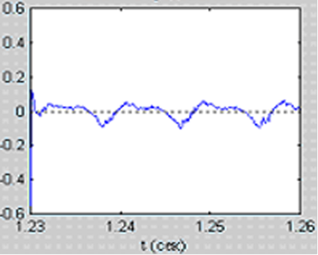 В случае фиксированной, довольно низкой, разрядности коэффициентов отражения (4) и уменьшающейся разрядности сигнала ошибки до значения (6), ухудшение синтезированного РС незначительно. При числе разрядов меньше (6) уже начинают наблюдаться значительные искажения. Если сравнить эти опыты с опытами, проделанными над стандартным фильтром, то для того же сегмента и при значении разрядности (8), наблюдалась неустойчивость синтезированного фильтра и, как следствие, полное искажение РС.