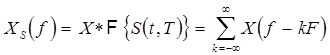 Его дискретно-временное преобразование Фурье равно, по теореме о свертке во временной области, произведению преобразований Фурье окна данных