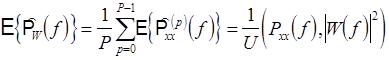 Подставив в формулу для математического ожидания периодограммы Уэлча, получим следующее выражение: