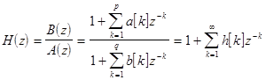 авторегрессионных параметров, определенные с помощью метода наименьших квадратов. Системная функция процесса авторегресии-скользящего среднего равна