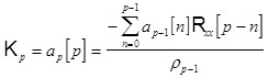 - оценочное значение дисперсии белого шума (которая будет использоваться в качестве ошибки линейного предсказания).Выбирается такое значение порядка, при котором величина ООП