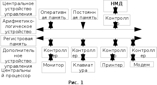 Структурно эти средства разбиваются на центральное устройство управления, АЛУ, внутреннюю память и управляющие устройства, связанные с конкретными устройствами вычислительной машины.