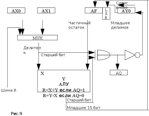 Алгоритм выполнения сложения и деления в арифметико-логическом устройстве, на примере цифрового сигнального процессора семейства ADSP-21xx. 13