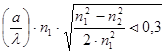 Если неравенство (1.1) не удовлетворено, то в световоде устанавливается многомодовый режим. Очевидно, что тип модового режима зависит от характеристик световода (а именно радиуса сердцевины и величины показателей преломления) и длины волны передаваемого света. Оптические волокна, предназначенные для работы в одномодовом режиме, называют одномодовыми оптическими волокнами. Соответственно ОВ для многомодового режима называют многомодовыми.