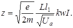 Выражая скорость V0 электрона через напряжение на аноде, получаем:
