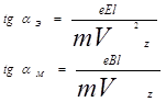 a) Угол отклонения электронного луча - α . Определяется по формулам: