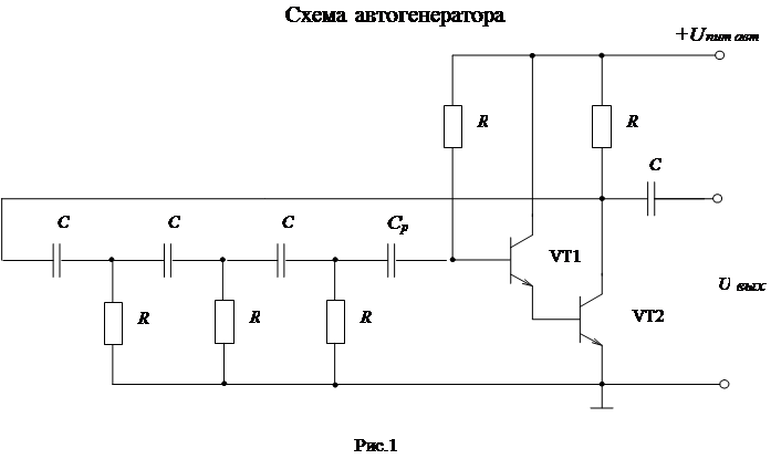 2.1 Рекомендации по расчету автогенератора. В качестве задающего генератора в работе используются схемы на биполярном транзисторе с пассивной RC-цепью обратной связи Рис.1.
