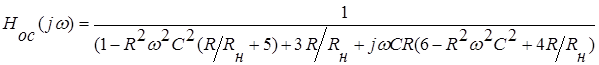 Из этой формулы видно, что φус (ωг )=π, значит для выполнения условия баланса фаз необходимо, чтобы цепь обратной связи вносила сдвиг фаз, равный π. Это будет выполняться при равенстве нулю мнимой части знаменателя выражения Нос (jω):