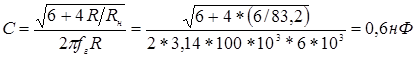 Емкости конденсаторов С цепи обратной связи обычно выбирают в пределах 100пФ÷1мкФ, а величину емкости разделительного конденсатора Ср - из условия: Ср >>С.