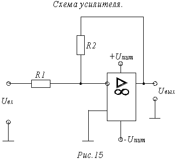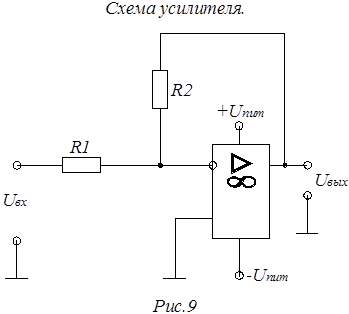 Амплитуда напряжения на выходе автогенератора больше амплитуды напряжения, которое следует подать на вход нелинейного преобразователя, поэтому сигнал генератора нужно ослабить. Для этого используем схему усилителя Рис.9: