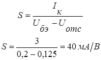Осталось определить только значение сопротивления Rб , задающего рабочую точку Uбэ0 , Iбэ0 . Рассчитаем его по формуле: