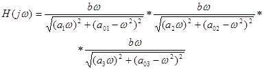 Требуемое выходное напряжение устройства выделения второй гармоники Um вых =1В (амплитудное значение). Из предыдущих расчетов известно, что амплитуда напряжения второй гармоники U2 =0,13В. Тогда амплитуда на выходе фильтра будет: