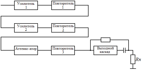 Усилители 1, 2 увеличивают входное напряжение до величины, необходимой для выходного каскада.