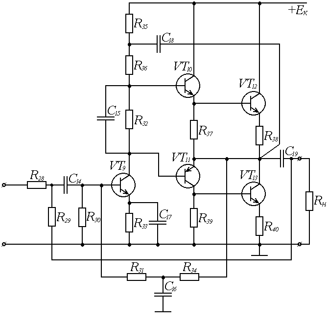 Выходной каскад предназначен для обеспечения заданной мощности на заданном сопротивлении нагрузки.