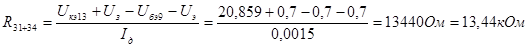 Поэтому принимаем R31 = 1300 Ом = 1,3 кОм, R34 = 12000 Ом = 12 кОм