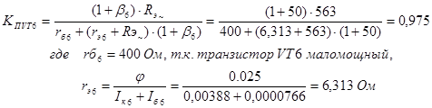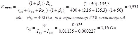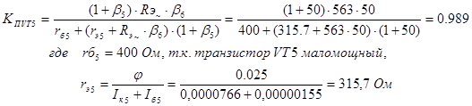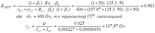 20. Определим коэффициент передачи повторителя на транзисторах VT10 – VT13: