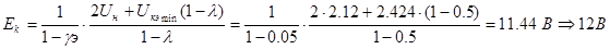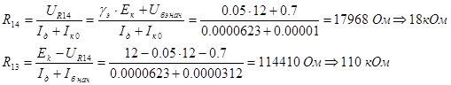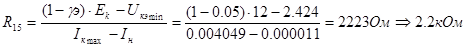 Приняв Uз = 0,7В получили Eк = 43,118В, округлим это значение до стандарта, т.е. примем Eк = 45В
