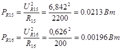 | R15 | 6.842 | 0.00311 | 0.0213 | 2200 | МЛТ-0,125 |