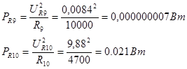 | R10 | 9.88 | 0.0021 | 0.021 | 4700 | МЛТ-0,125 |