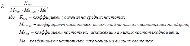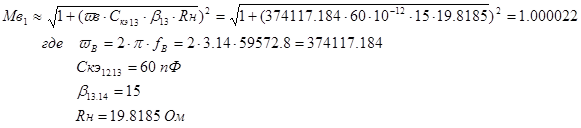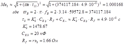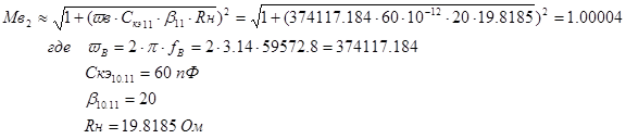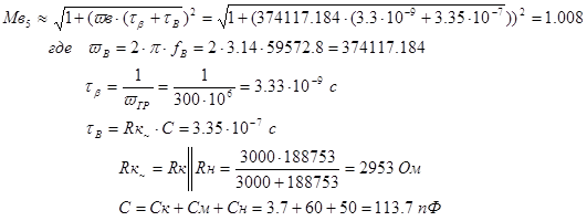 · Значения частотных искажений Мн =1,0151, Мв =1,1Мн =1,11661;