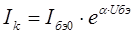 где Iк - ток коллектора, Iэо – начальный ток эмиттера, α – параметр p-n перехода, Uбэ – напряжение между эмиттером и базой. Экспоненциальная характеристика сохраняется в интервале изменения токов до пяти декад. Это позволяет реализовать деление напряжений в широком динамическом диапазоне.