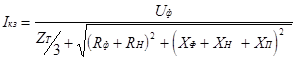 где U ф - напряжение сети ; R ф и R н - активные, а Хф и Хн - внутренние индуктивные сопротивления фазного и защитного нулевого проводников соответственно ; Хп - сопротивление взаимоиндукции петли фаза - ноль.
