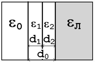 Общая толщина не должна превышать d0 . Проницаемости сред e0 ,e1 ,e2 ,eЛ . Коэффициент отражения по мощности от линз |R|2 требуется снизить в А раз.