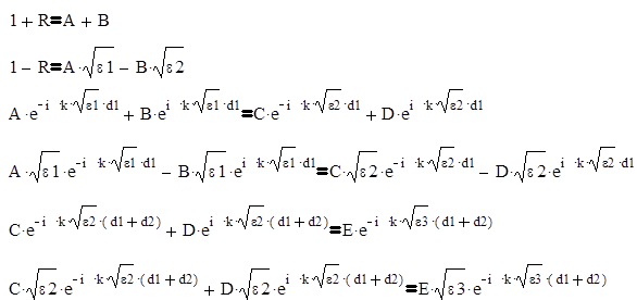 Как видно из таблицы лучший результат, обеспечивающий снижение коэффициента отражения по мощности более чем в 5 раз достигается при следующих значениях e1 ,e2 d1 ,d2 : (9z строка)