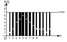 Так как информация должна вводиться и преобразовываться для хранения в цифровой вид, то необходимо применить АЦП и оцифровывать сигнал по методу импульсно-кодовой модуляции, суть которой заключается в следующем. Если на рис.1 представлен исходный сигнал: