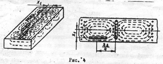 Интенсивность возбуждения щели зависит не только от ее расстояния от средней линии волновода х