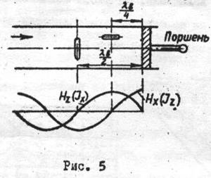 , но и от расстояния между центром щели и закорачивающим поршнем. В волноводе без щелей, закороченном на конце, существуют стоячие волны. При этом на конце волновода (закорачивающий поршень) в соответствии с граничными условиями на идеальной металлической поверхности существует узел составляющей