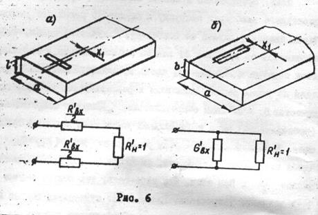 Щель, прорезанная в стенке волновода, представляет для последнего некоторую нагрузку и влияет на режим его работы. Часть энергии, идущей по волноводу, излучается щелью, часть отражается от нее, как от всякой неоднородности, и направляется обратно к генератору, часть проходит дальше. Влияние щели на режим работы волновода характеризуется входной проводимостью Y